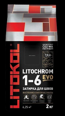 ЛТК Затирка для швов LITOCHROM 1-6 LUXURY EVO ,2 кг СЕРАЯ ( ведро) (LEE 130)